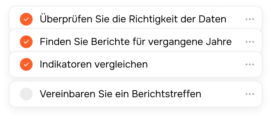 Analysen, Berichte und Bilanzen erstellen wir für Sie auf unserer Plattform. Dort laden Sie Dokumente hoch und beantworten Fragen, wir prüfen die Ergebnisse.